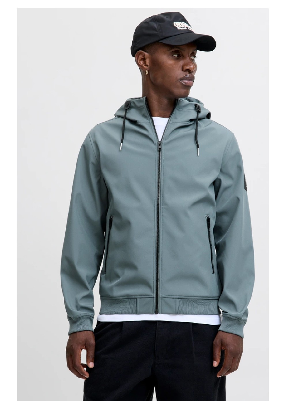 - Artículo : Chaqueta softshell - Funcionalidad : Resistente al agua - Cuello : Capucha con cordón de ajuste - Manga : Manga larga - Puños : Puños acanalados - Forro : Sin forro, costuras cubiertas con ribetes