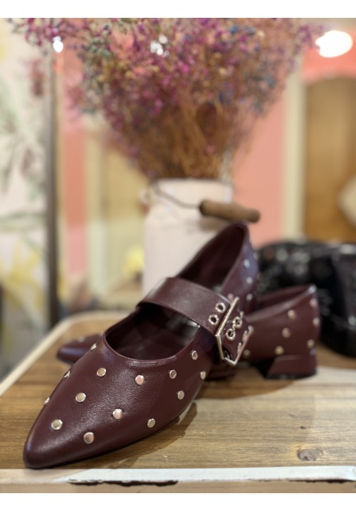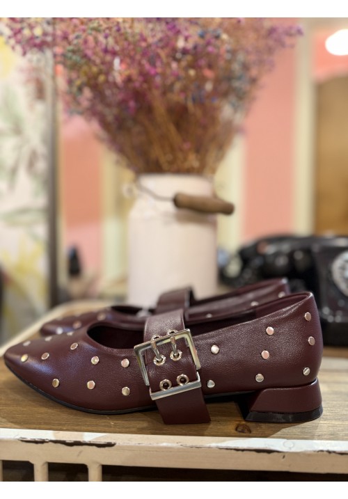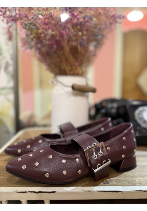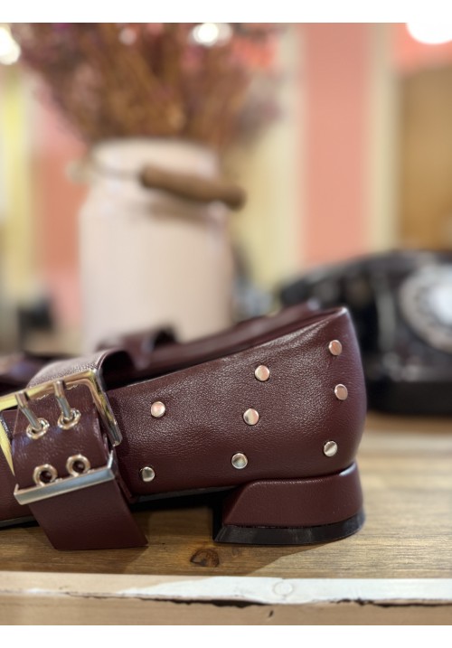 francesita con pulsera y un tacón de unos 2cm, en polipiel y con tachuelas